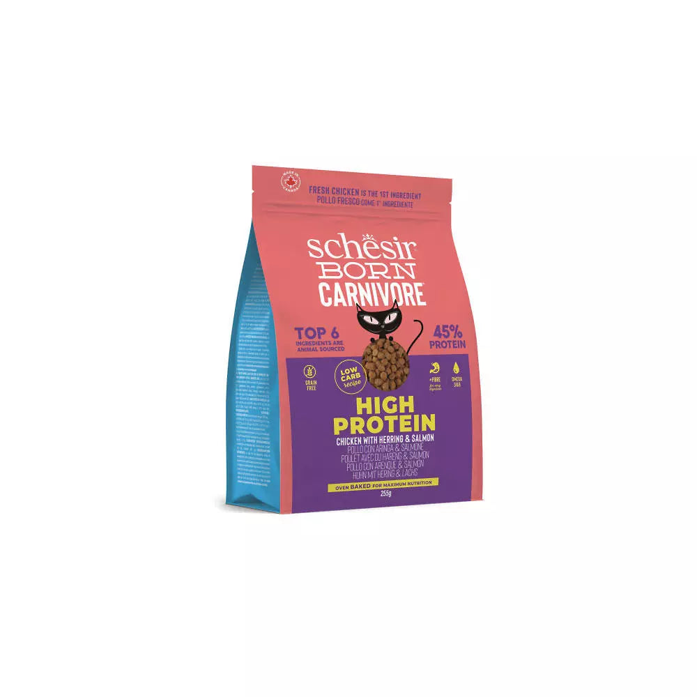 • Schesir Born Carnivore je recept z visokim deležem živalskih beljakovin za prave mesojede (45%)